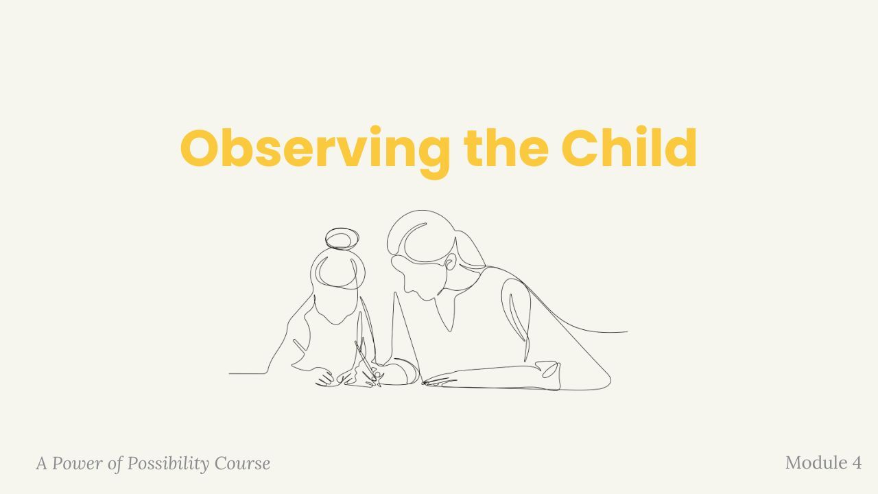 This final module focuses on observing the child through the Power of Possibility and Aid to Life philosophy. Rather than centering correction, Guides learn to observe with trust, seeing development in motion and responding from understanding while staying aligned with Montessori principles.